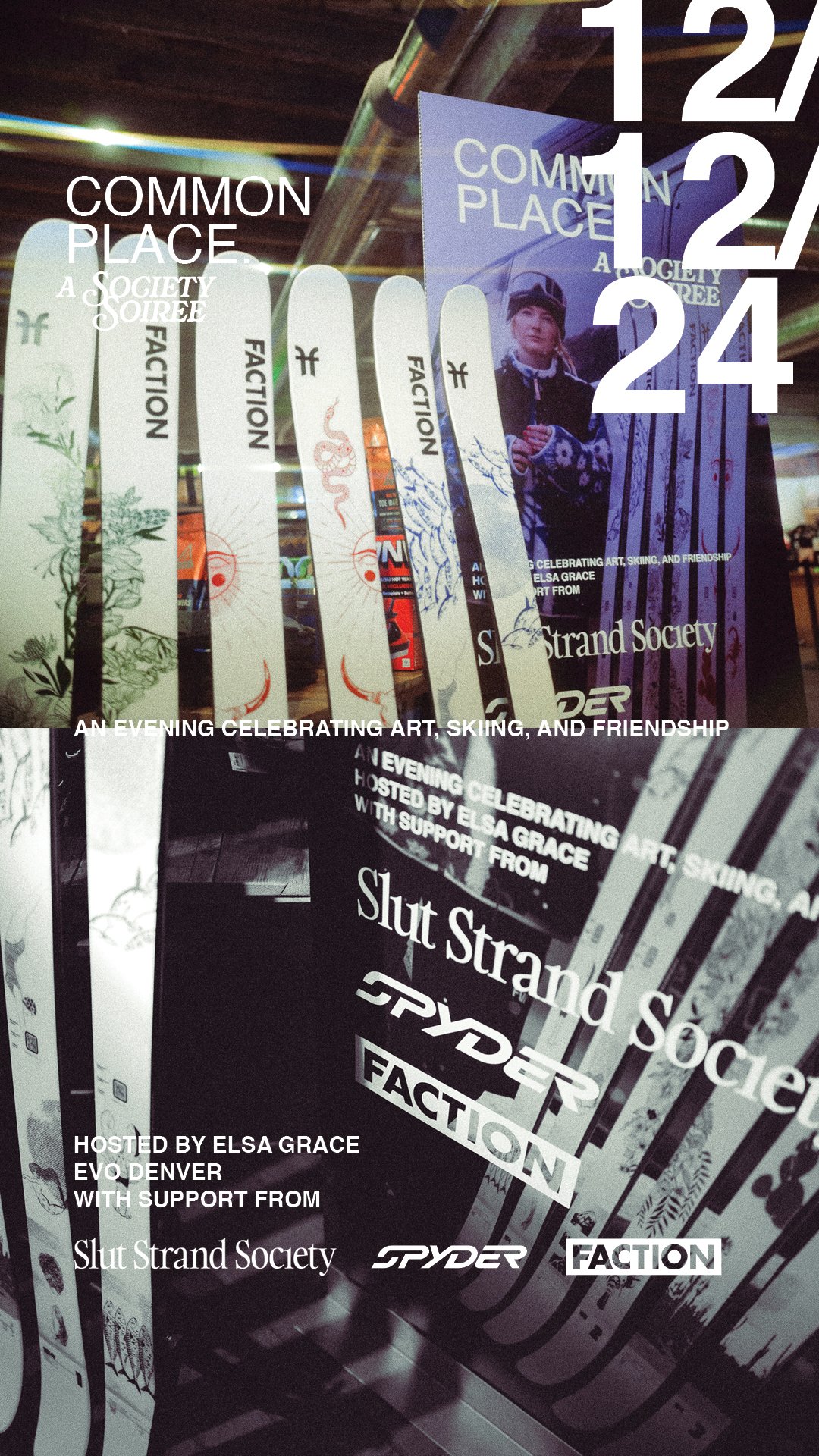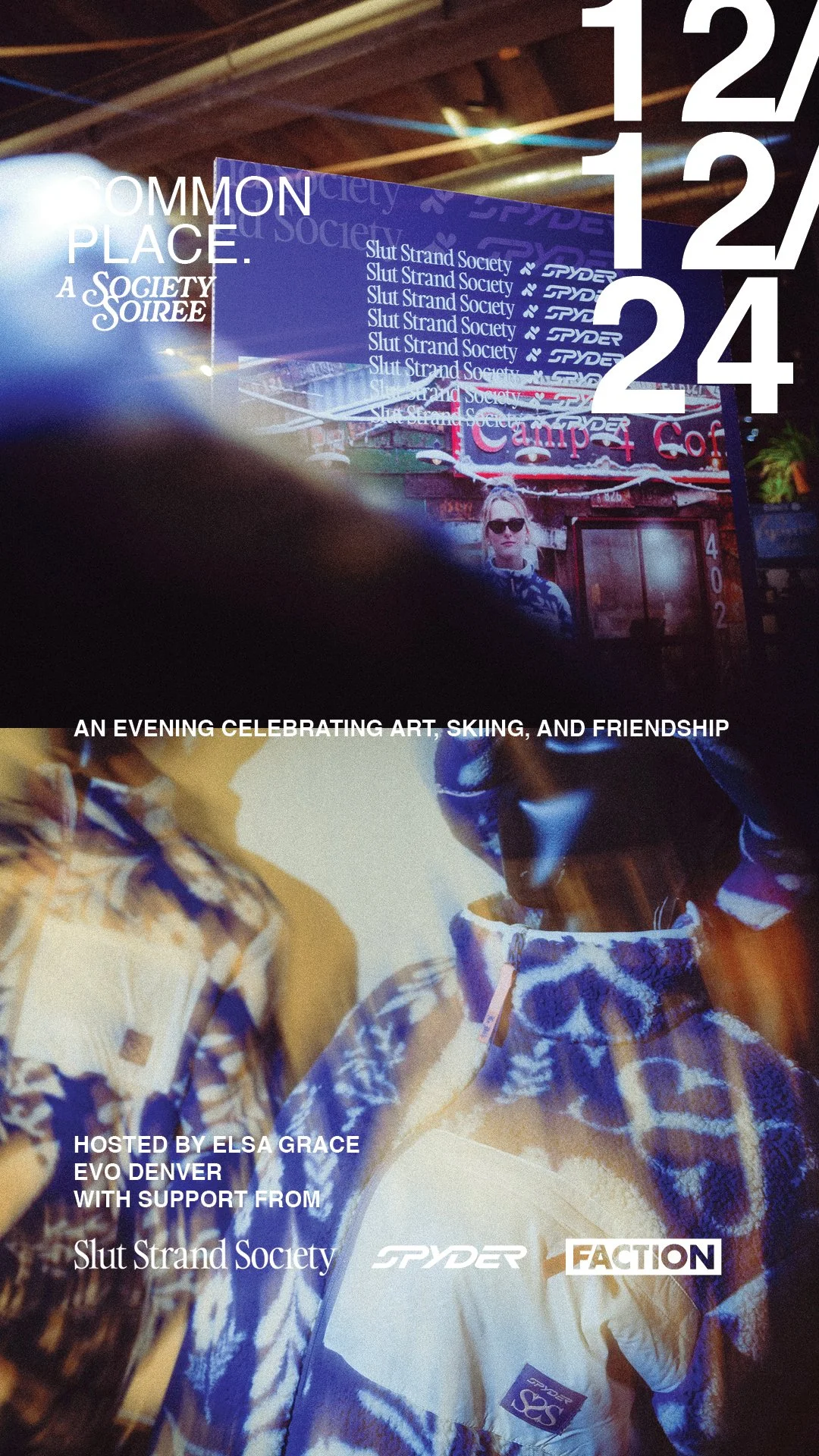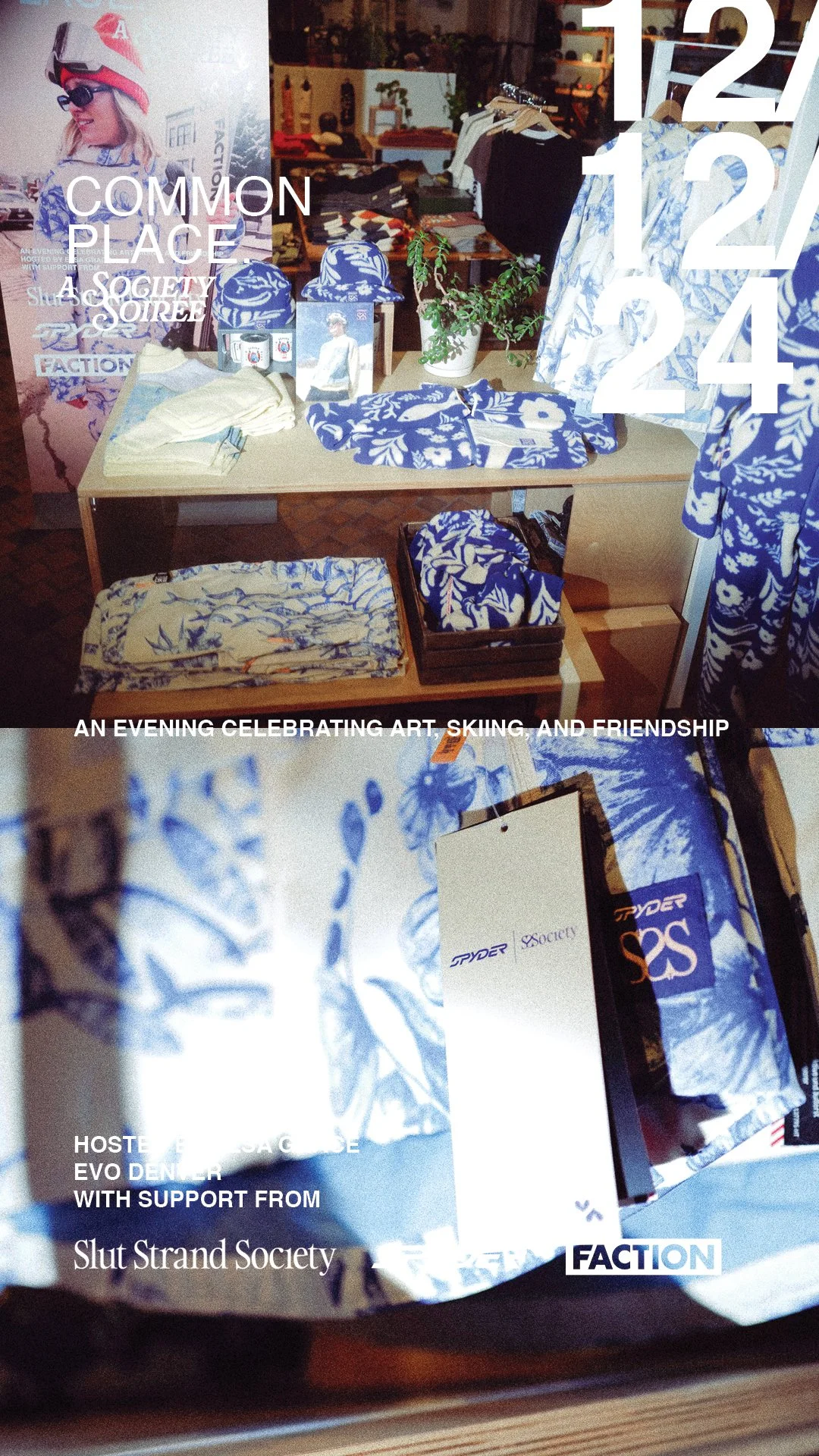 The centerpiece was "Common Place," a retail event hosted at evo Denver in December 2024 to celebrate the collection launch. CSR Lab designed the experience and wrote the brief on behalf of all four partners: Spyder, SSS, evo, and Faction Skis.