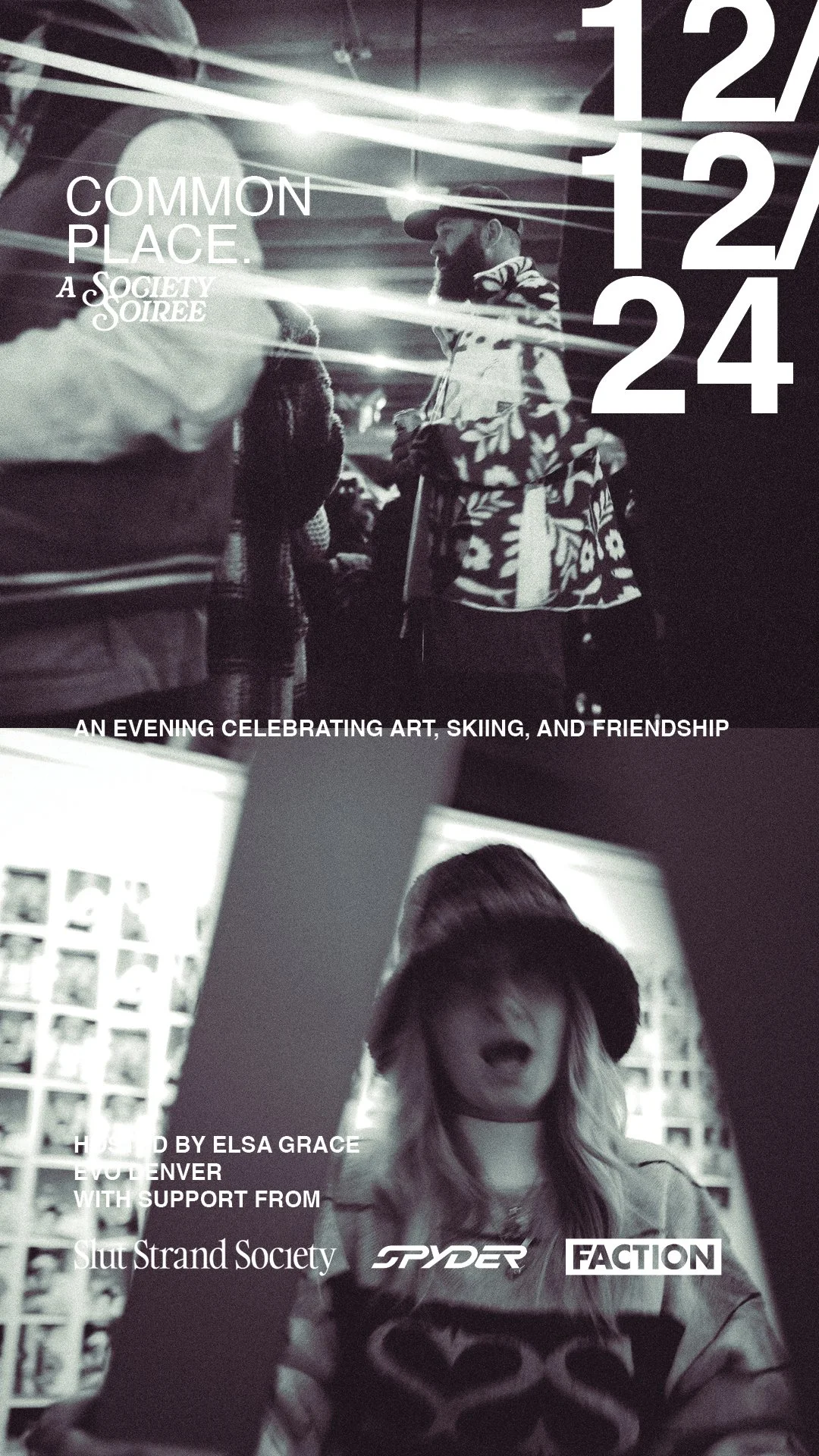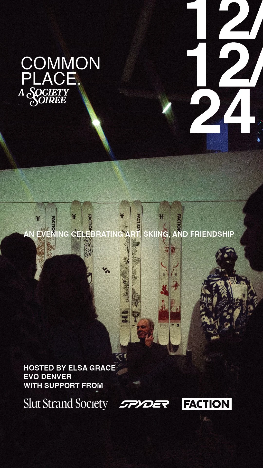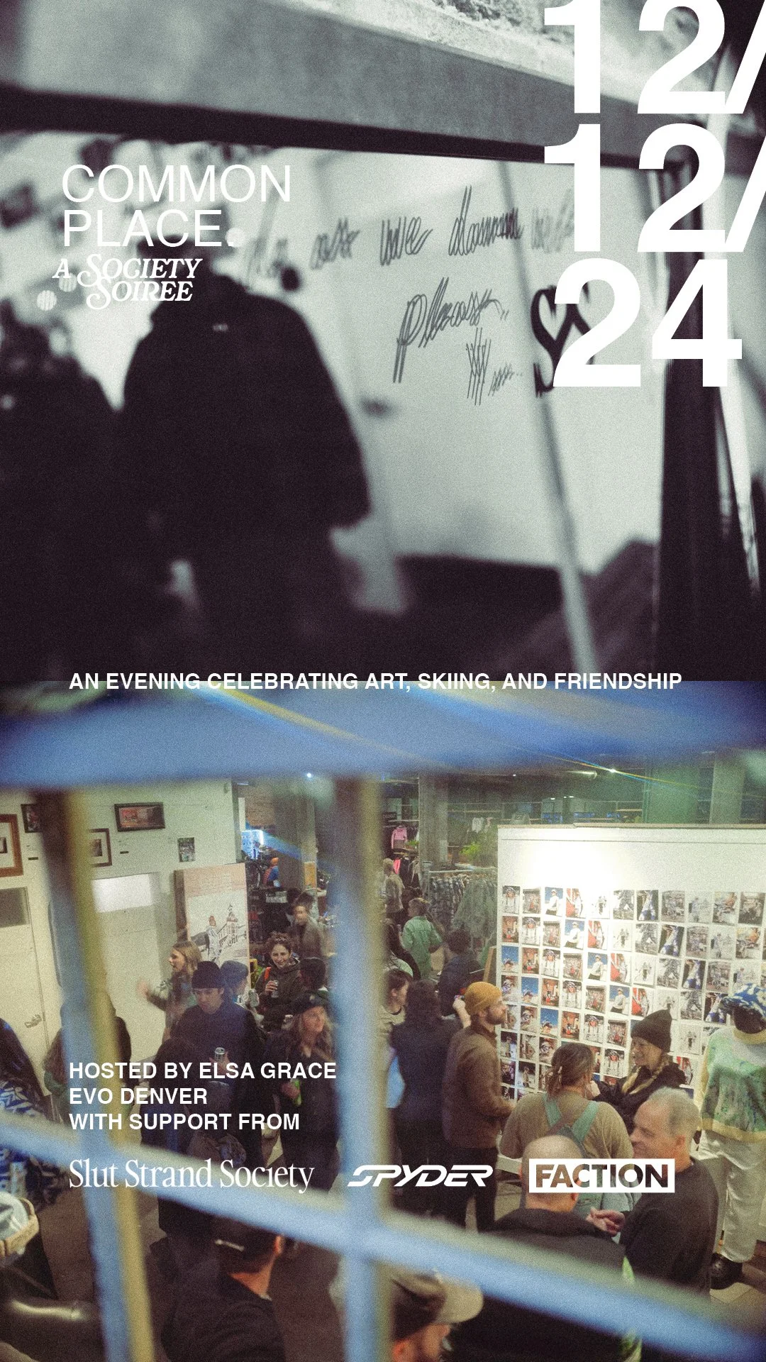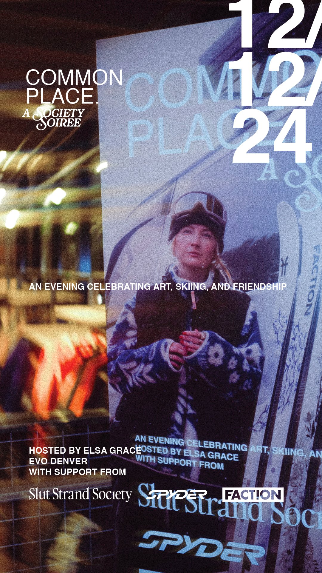 The centerpiece was "Common Place," a retail event hosted at evo Denver in December 2024 to celebrate the collection launch. CSR Lab designed the experience and wrote the brief on behalf of all four partners: Spyder, SSS, evo, and Faction Skis.