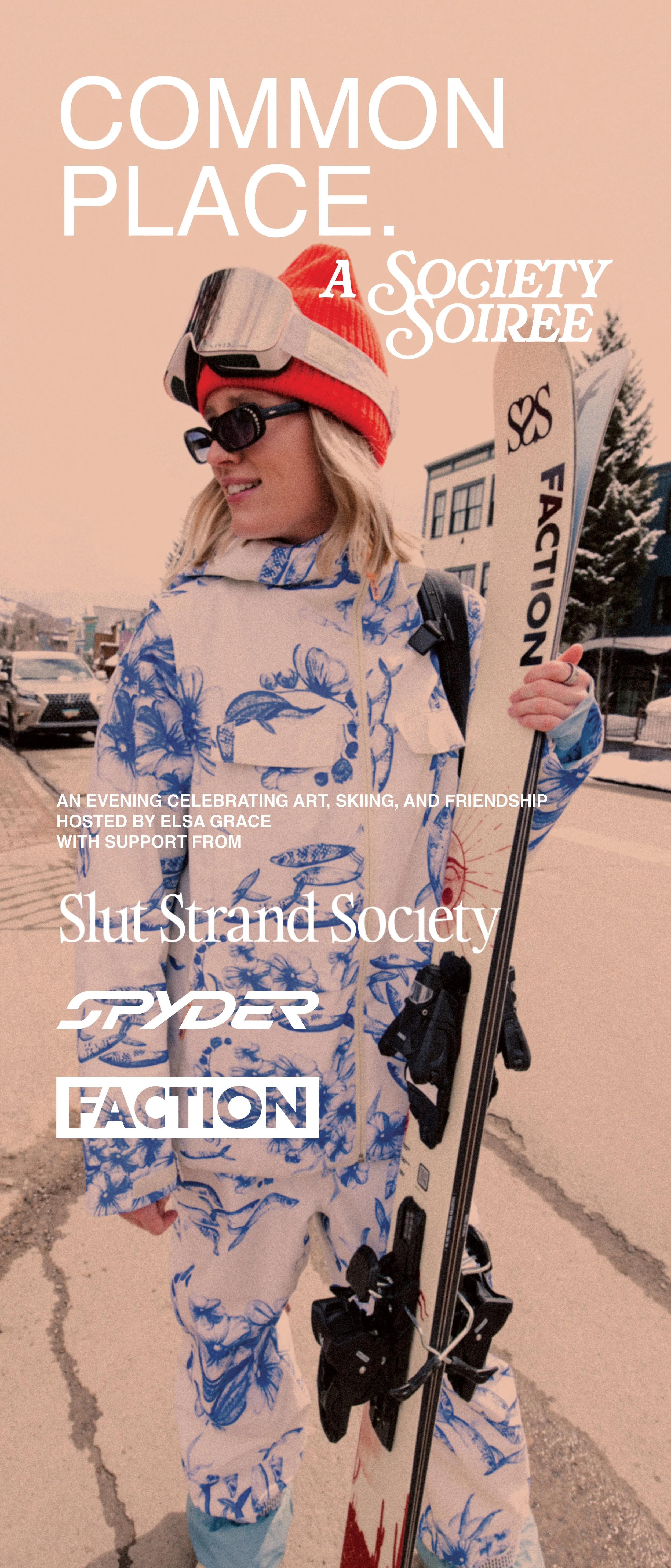Slut Strand Society, founded by designer and artist Elsa Grace, had built exactly that audience. SSS started as a reclamation project. The name refers to the strands of hair women pull from under helmets and beanies on the mountain, a term that twenty five years ago was derogatory and today Elsa has turned into a symbol of pride, femininity, and creative defiance in the outdoor space. The community is fiercely loyal, culturally sharp, and allergic to anything that feels manufactured.